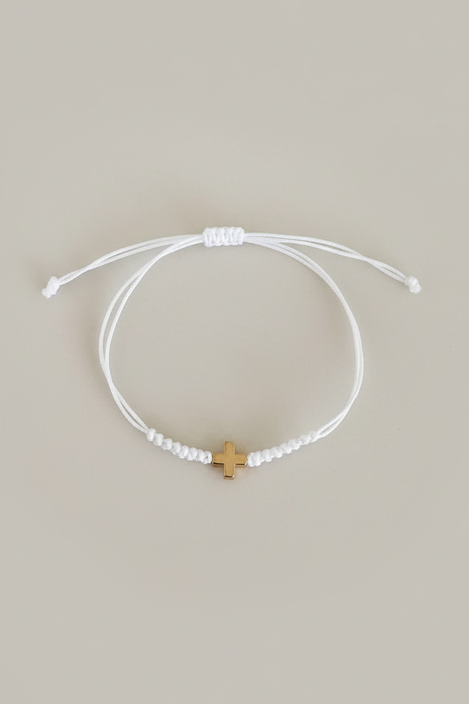 Gold Cross White Cord Bracelet