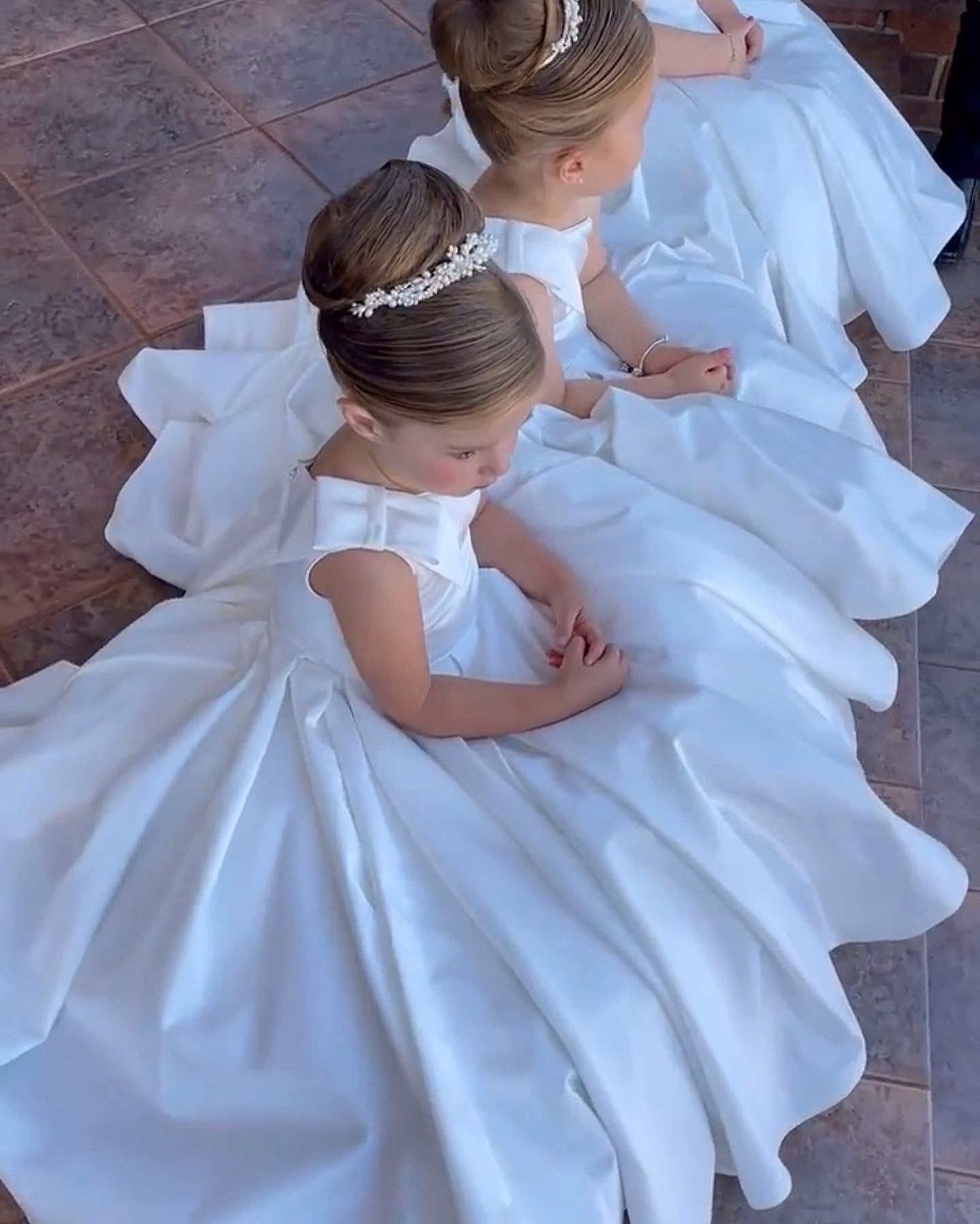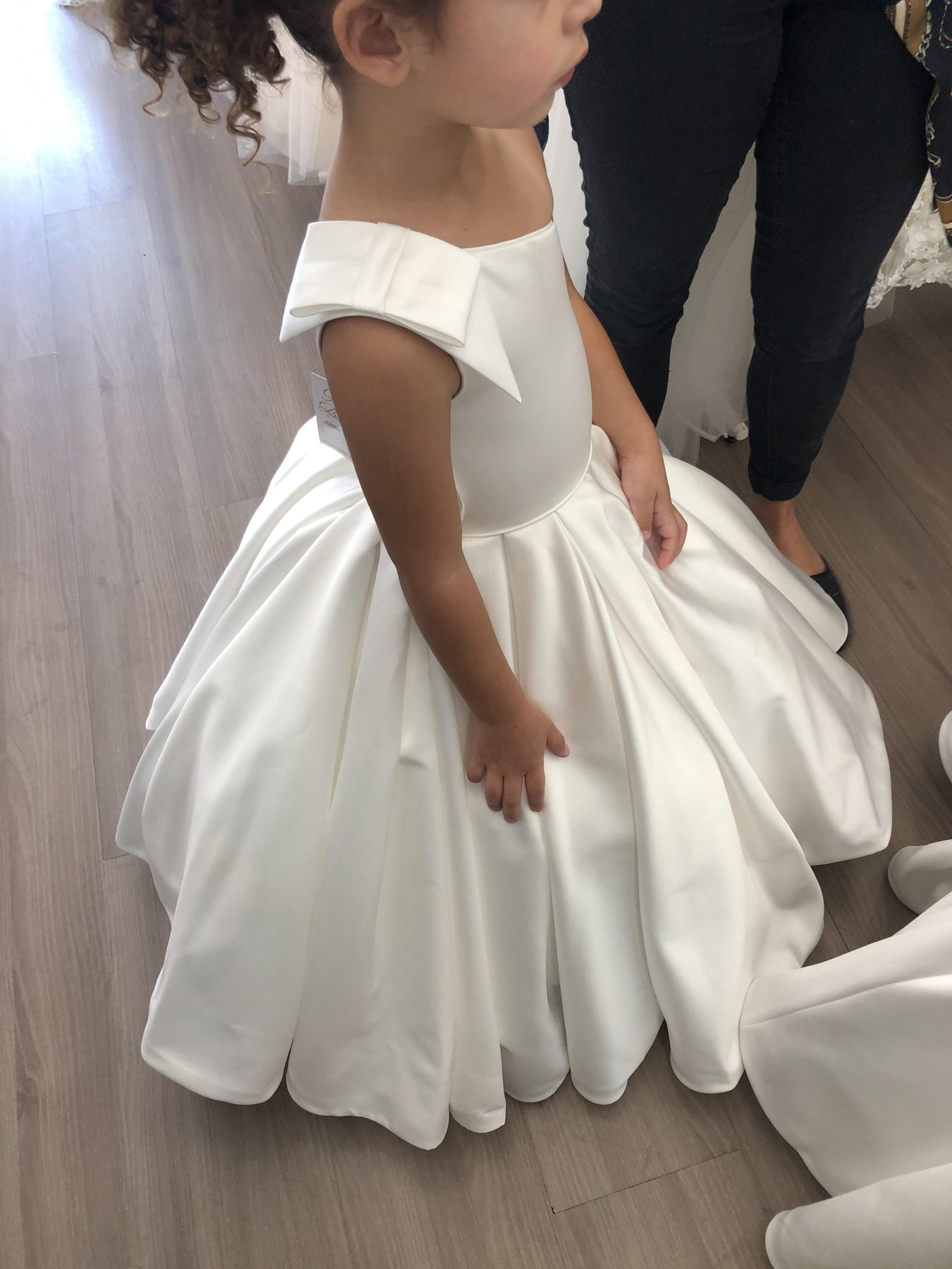 The satin Milla dress features a one shoulder design with bow detail and magnificent full box pleat skirt with inbuilt hoop.