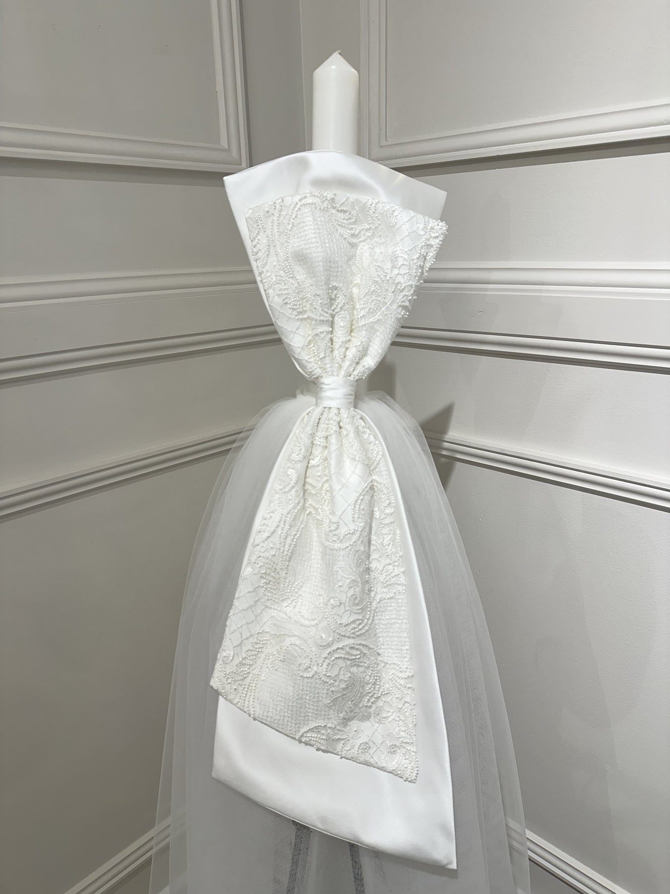 The stunning Khloe Pini with gorgeous matching Orthodox Candle. This is the perfect Christening package.