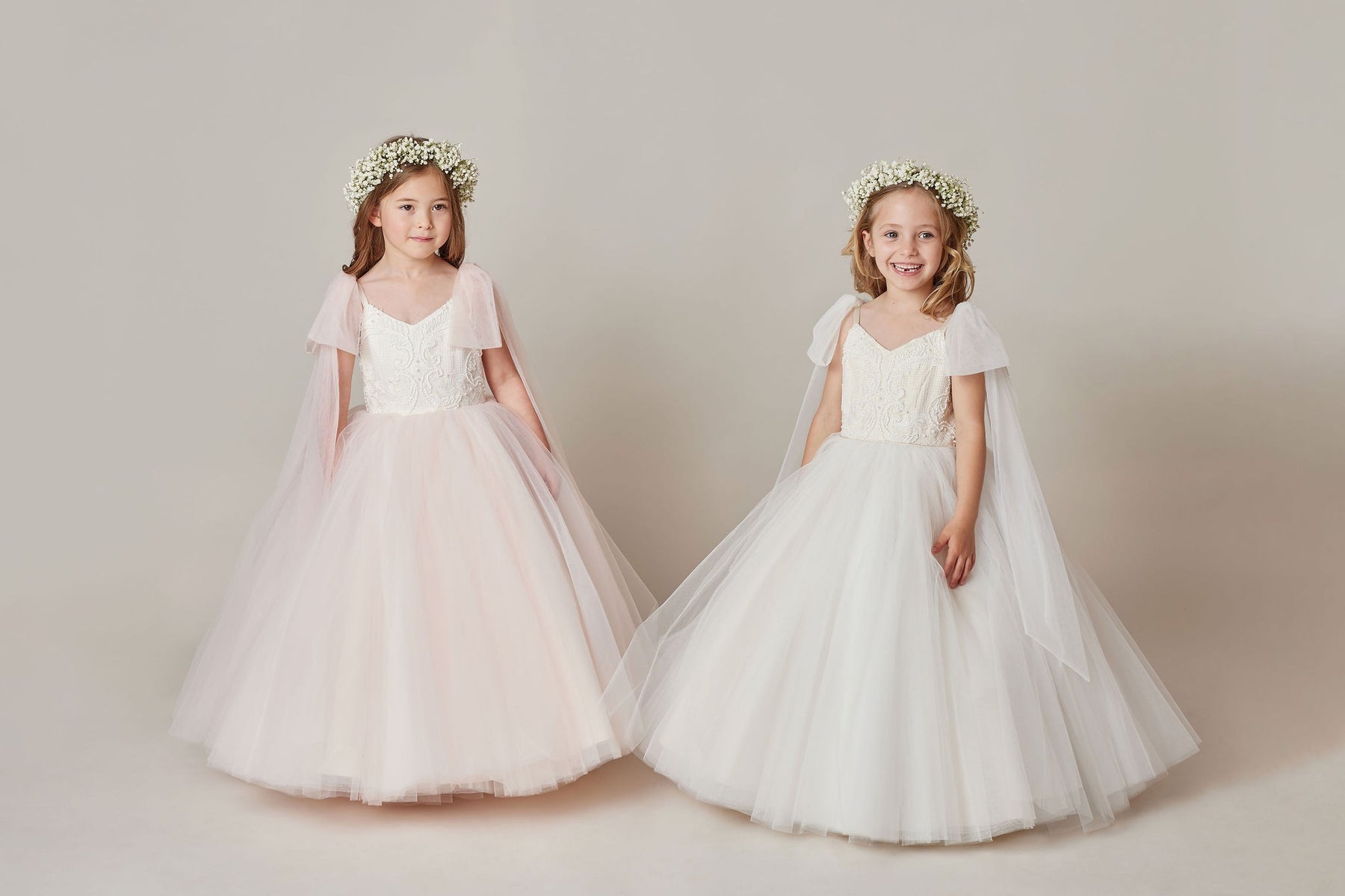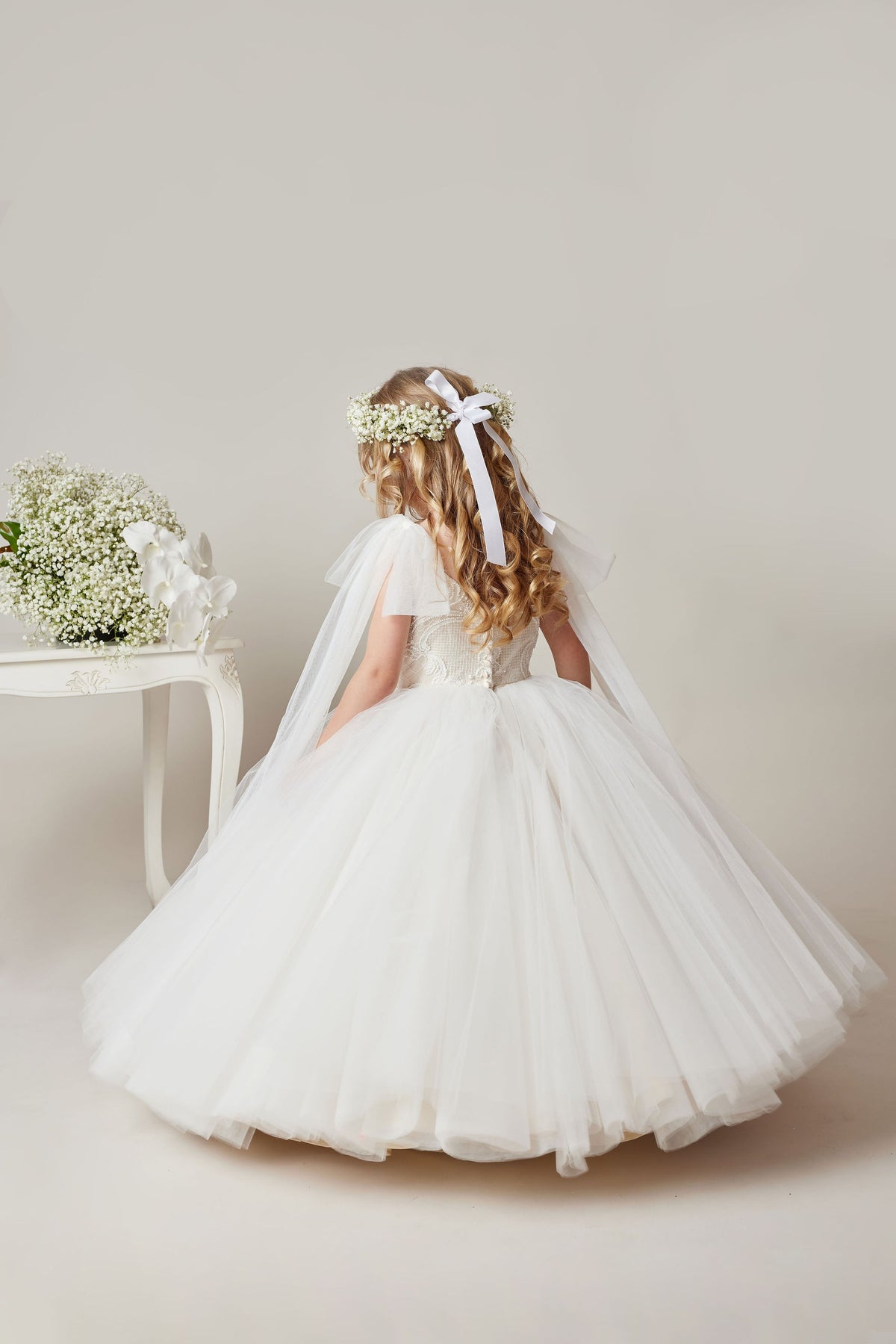 The stunning Aurora dress features shoestring straps with tulle bows and the most magnificent full ballerina skirt.