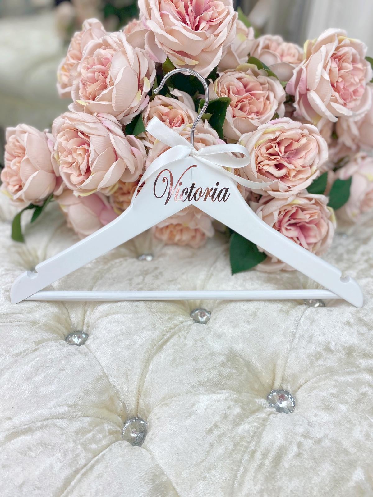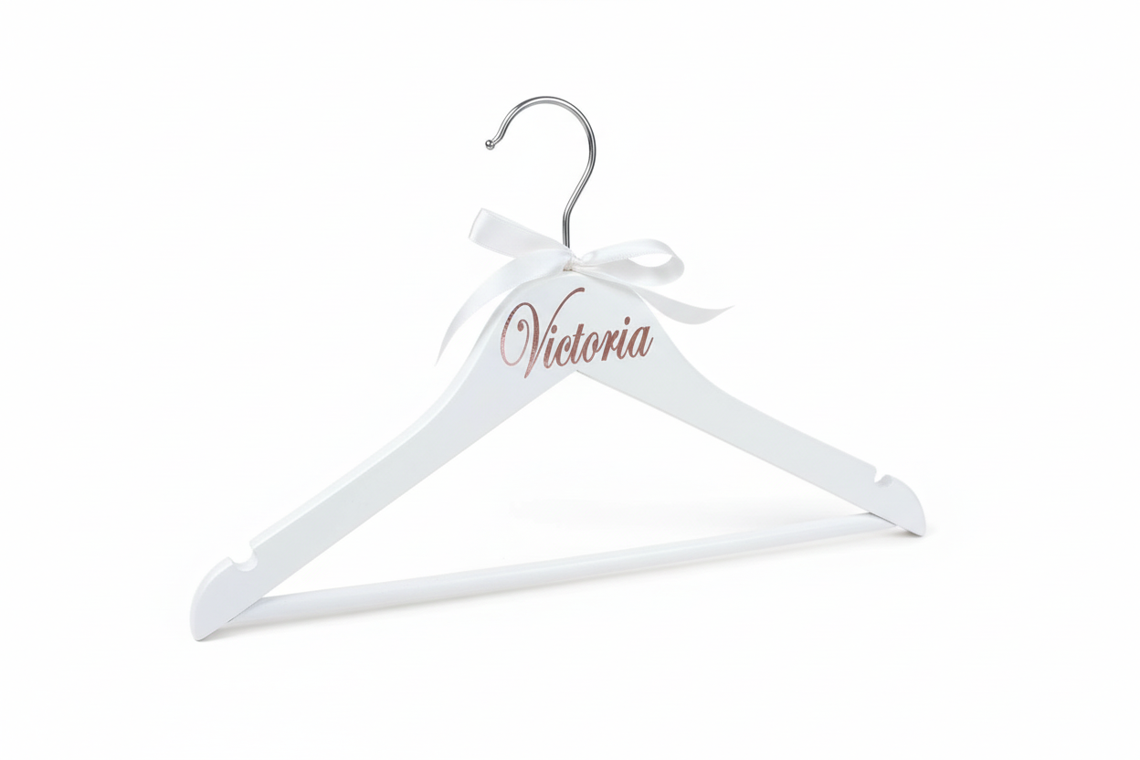 Personalised first name on Child White Wooden Hanger.